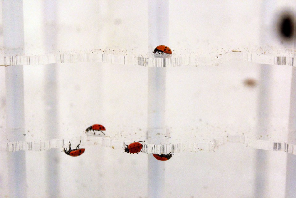 Fly Away Home ← Previous Fly Away Home (detail). 2012. Kinetic sculpture made of Plexiglas replica of the Murrah Building, wood, medical tubing, photographs, and hundreds of live ladybugs. Dimensions variable. Like Loading...