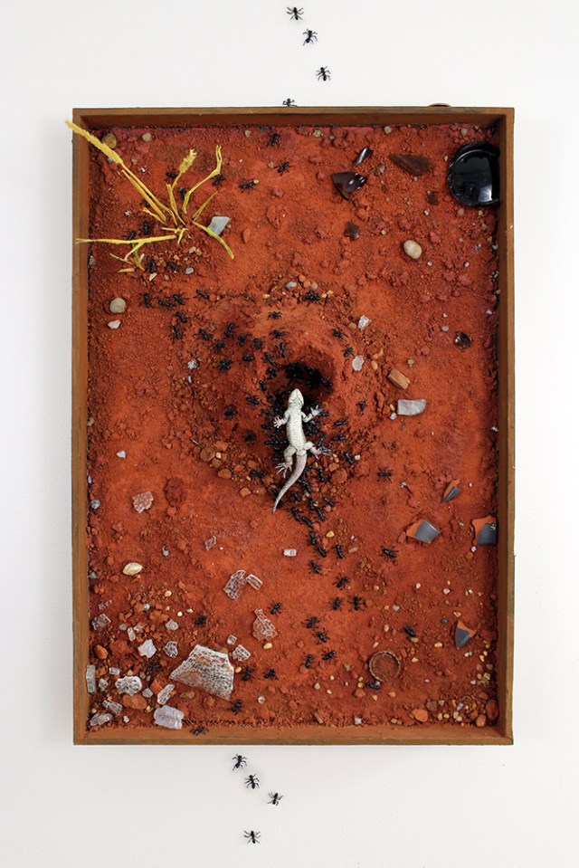 Ant Hill ← Previous Next → Ant Hill. 2019. Oklahoma dirt, glass, ceramic, acrylic, metal, sculpee, hay. 22.5 x 15.5 x 6 in Like Loading...