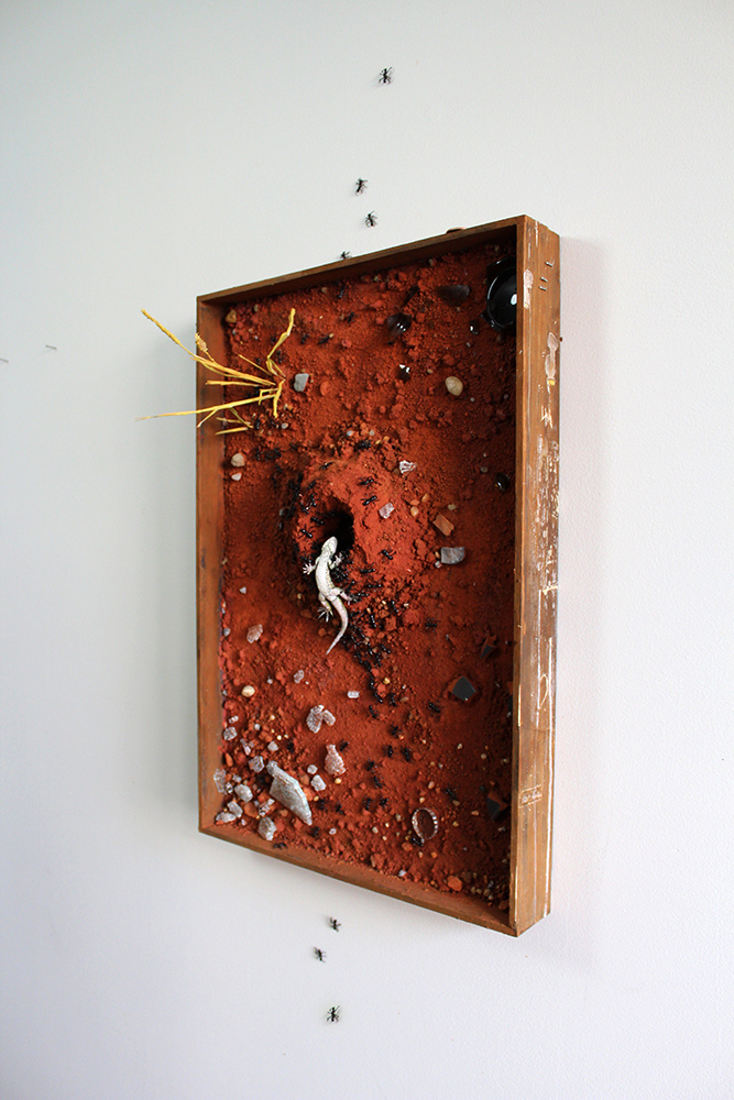 Ant Hill_2 ← Previous Next → Ant Hill (side view). 2019. Oklahoma dirt, glass, ceramic, acrylic, metal, sculpee, hay. 22.5 x 15.5 x 6 in Like Loading...