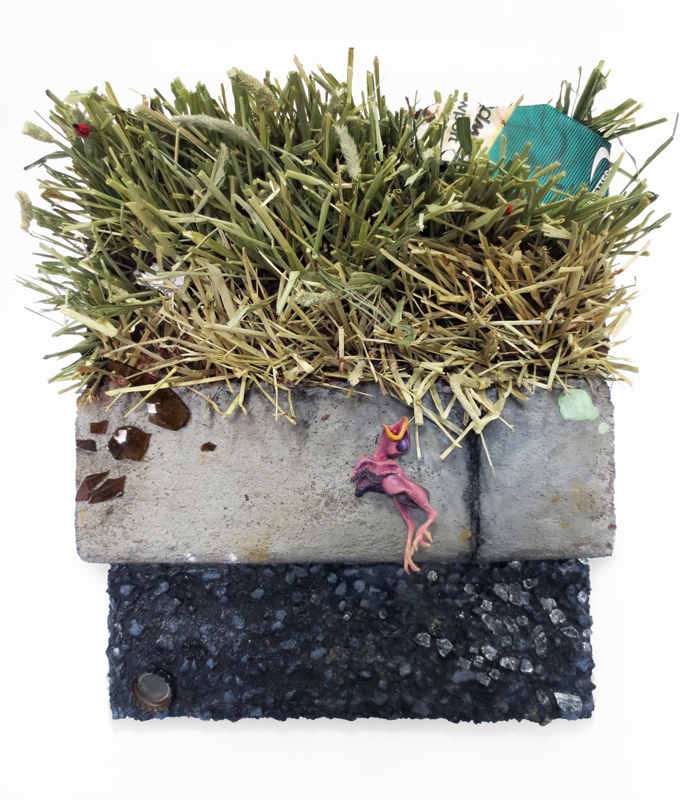 Curbside ← Previous Next → Curbside. 2016. Acrylic, clay, dirt, rocks, hay, cloth, wood, gum, trash. 14.5 x 12 x 6 in. Like Loading...