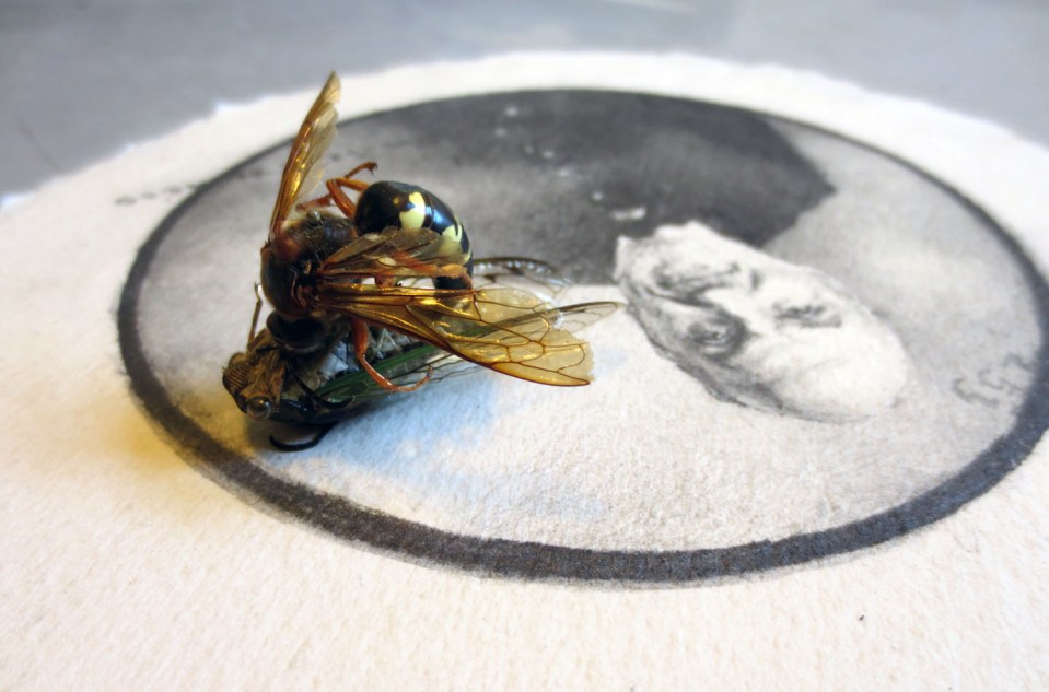 Francis White ← Previous Next → Francis White. 2013. Graphite, paper, cicada, cicada killer wasp. 8 in diameter, 2 in high. Like Loading...