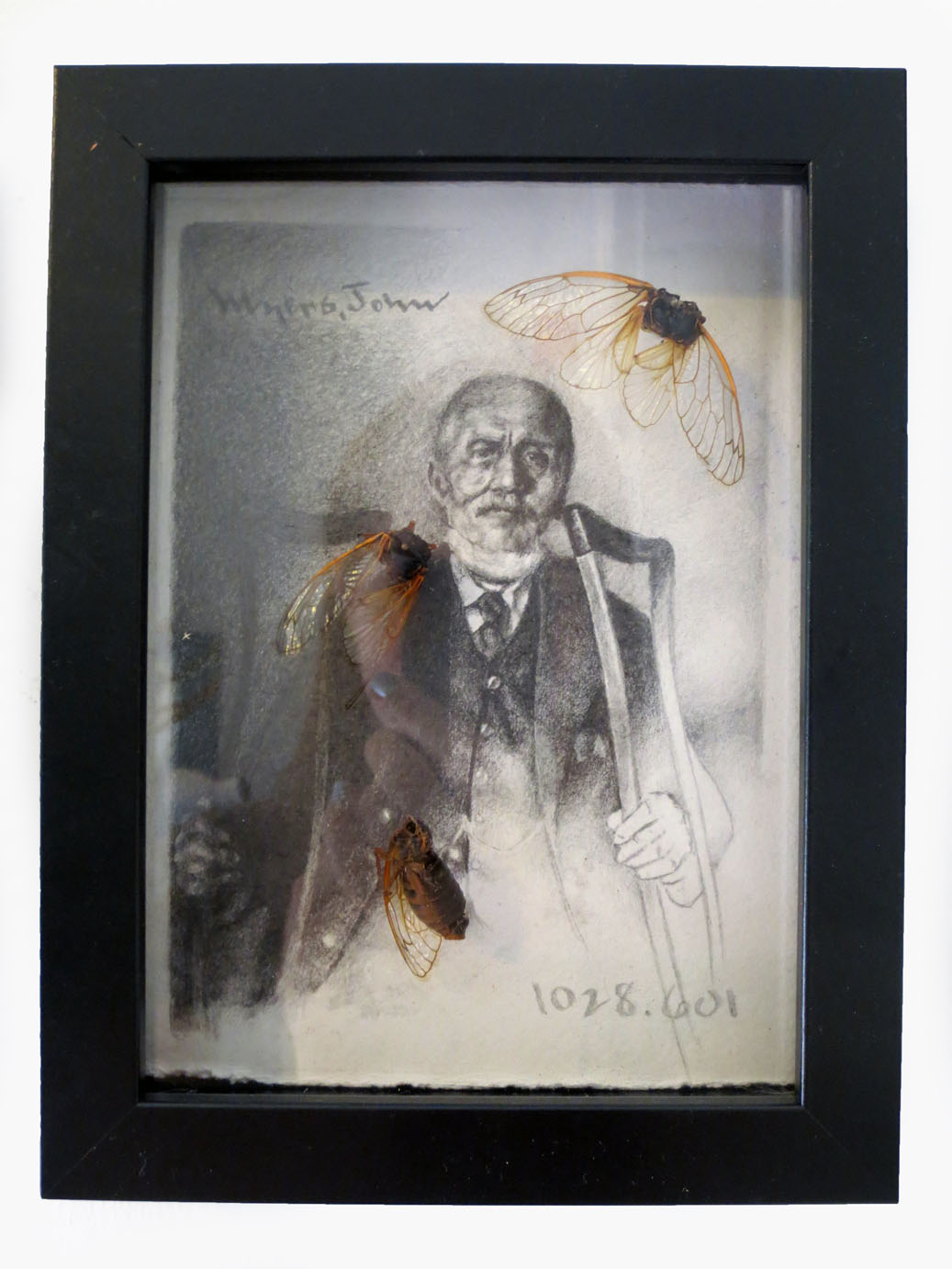 John Meyers. 2013. Graphite, paper, magicicada. 9 x 6 in.