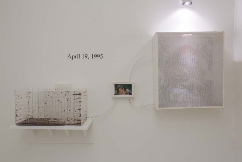 Fly Away Home ← Previous Next → Fly Away Home. 2012. Kinetic sculpture made of Plexiglas replica of the Murrah Building, wood, medical tubing, photographs, and hundreds of live ladybugs. Dimensions variable. Like Loading...