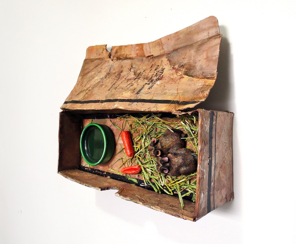 Shoe Box ← Previous Next → Shoe Box (view 2). 2017. Cardboard, acrylic, sculpey, ceramic, hay, resin. 13.5×11.5×4. Like Loading...